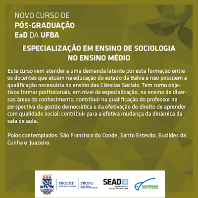 A Secretaria de Educação a Distância da Univasf informa que o Processo Seletivo para ingresso em cursos de especialização terá período de inscrições prorrogado até o próximo dia 16 de outubro. É importante salientar que a data limite para fazer o pagamento da inscrição é 17 de outubro.